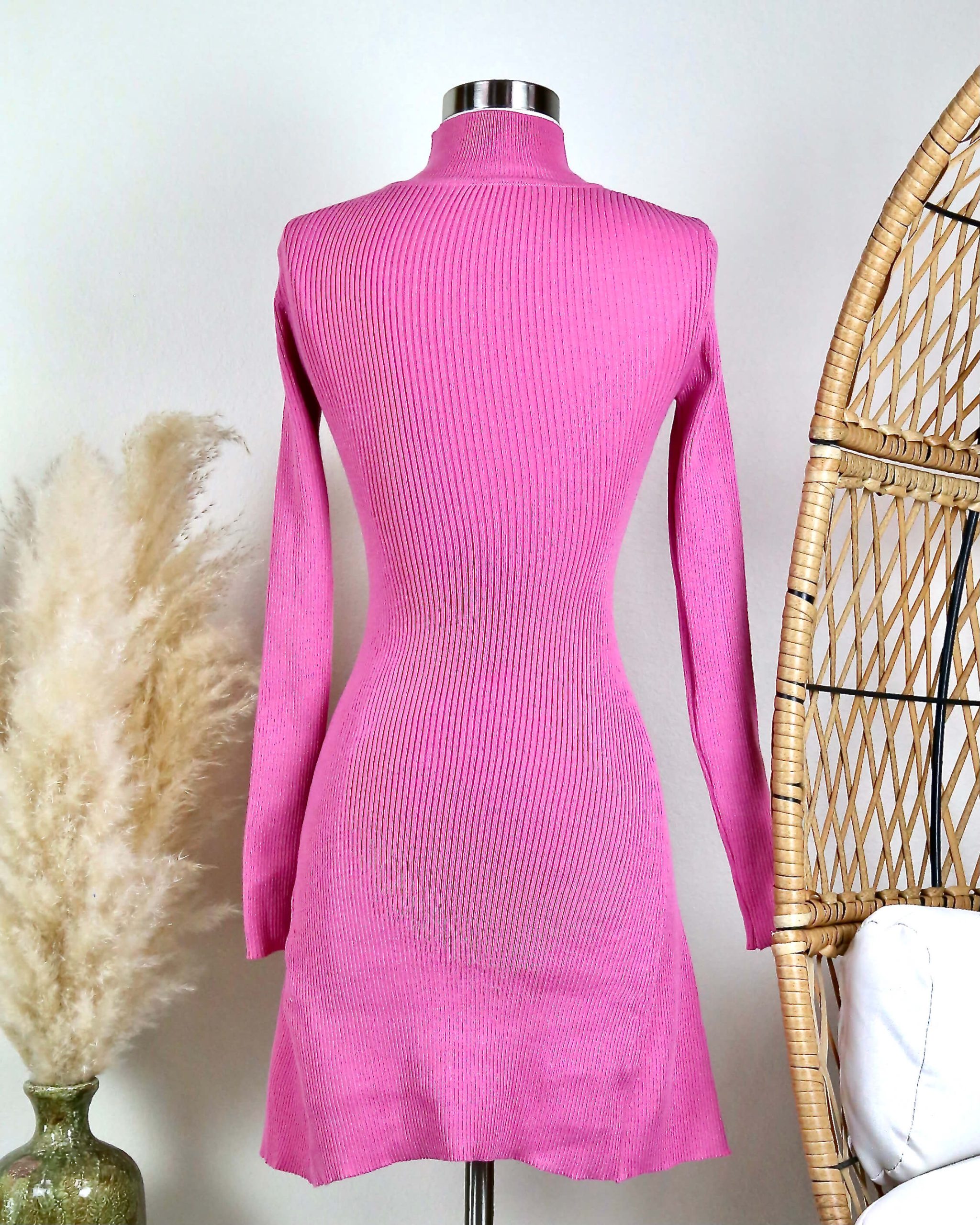 All The Rumors Are True Long Sleeve Ribbed Sweater Dress in Magenta