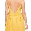 Let the sun wash over you in this boho-chic minidress styled with a plunging V-back, ropy straps with tassel ties and a comfortably smocked bodice.