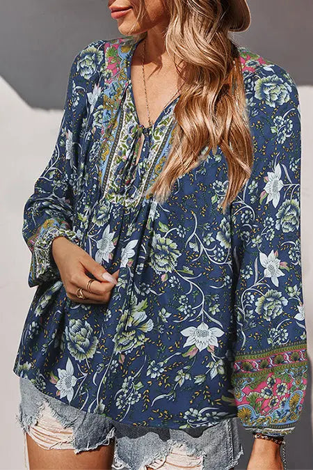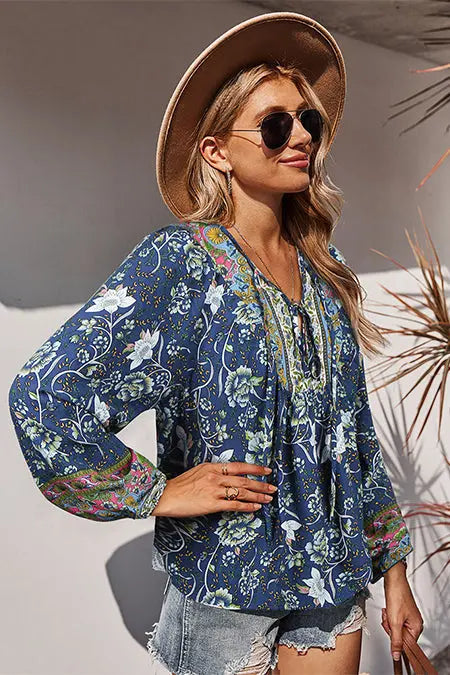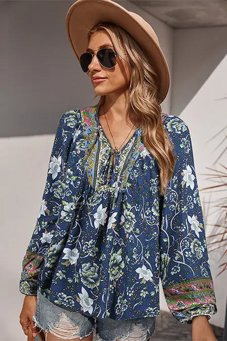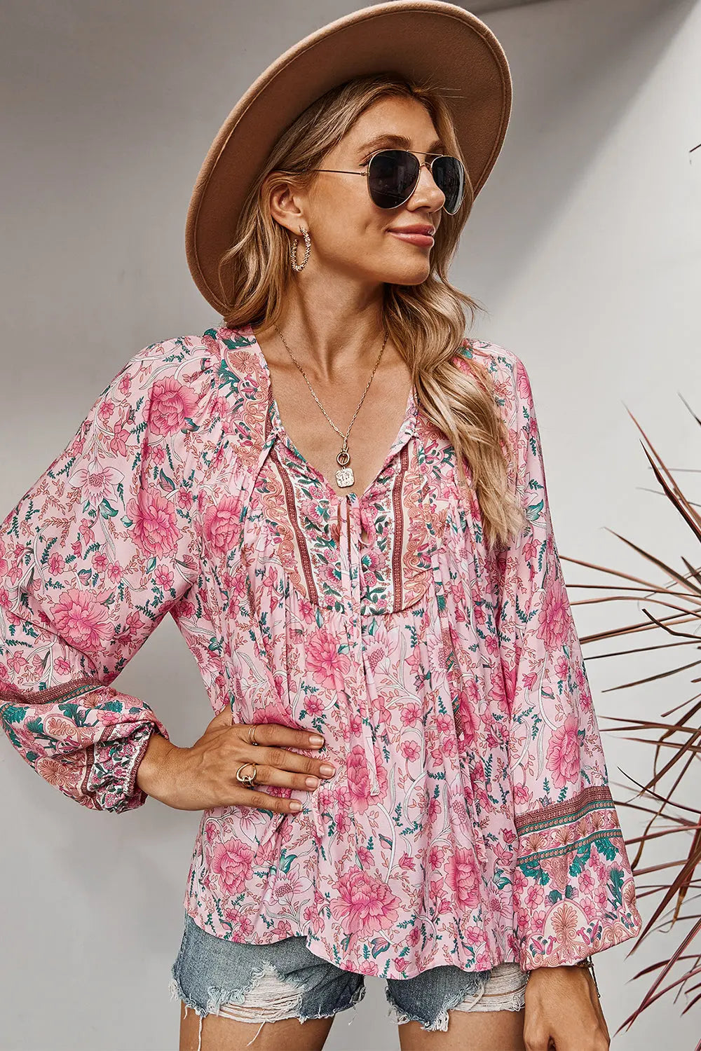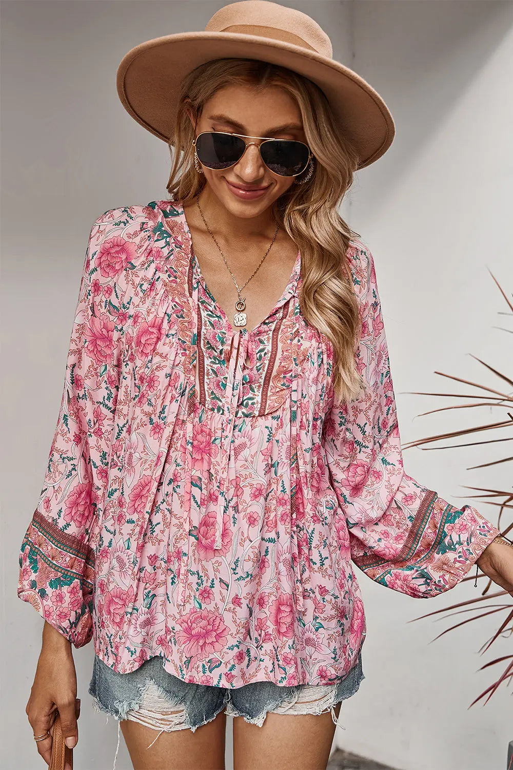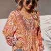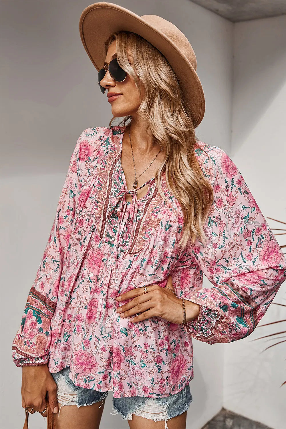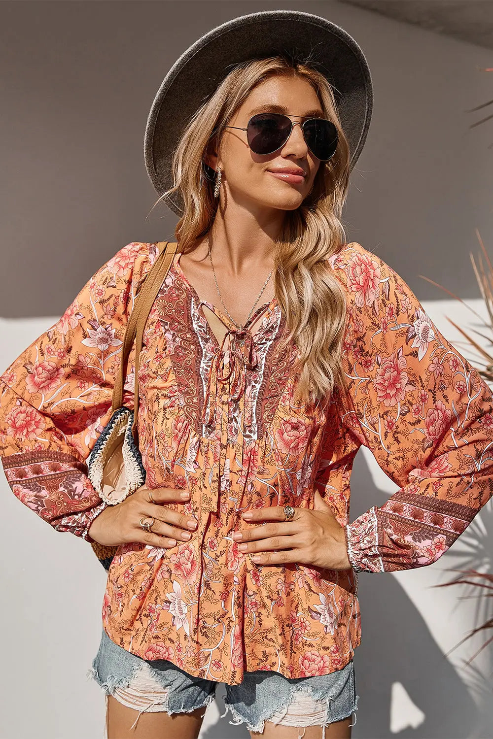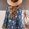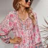 Tie V Neck Long Sleeve Babydoll Peplum Tops