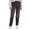 Step out in street-chic style with distressed jeans from Blackcottondress in a fresh faded black wash. These perfect pair of jeans feature a mid rise, zipper fly-button closure, belt loops, distressed details, and a ripped hem. Pair these jeans with your favorite top and some sandals or booties!
