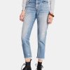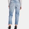 Step out in street-chic style with distressed jeans from Blackcottondress in a fresh blue wash. These perfect pair of jeans feature a mid rise, zipper fly-button closure, belt loops, distressed details, and a ripped hem. Pair these jeans with your favorite top and some sandals or booties!