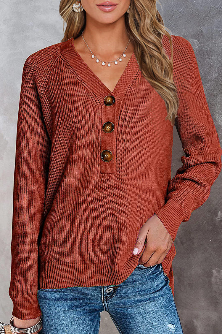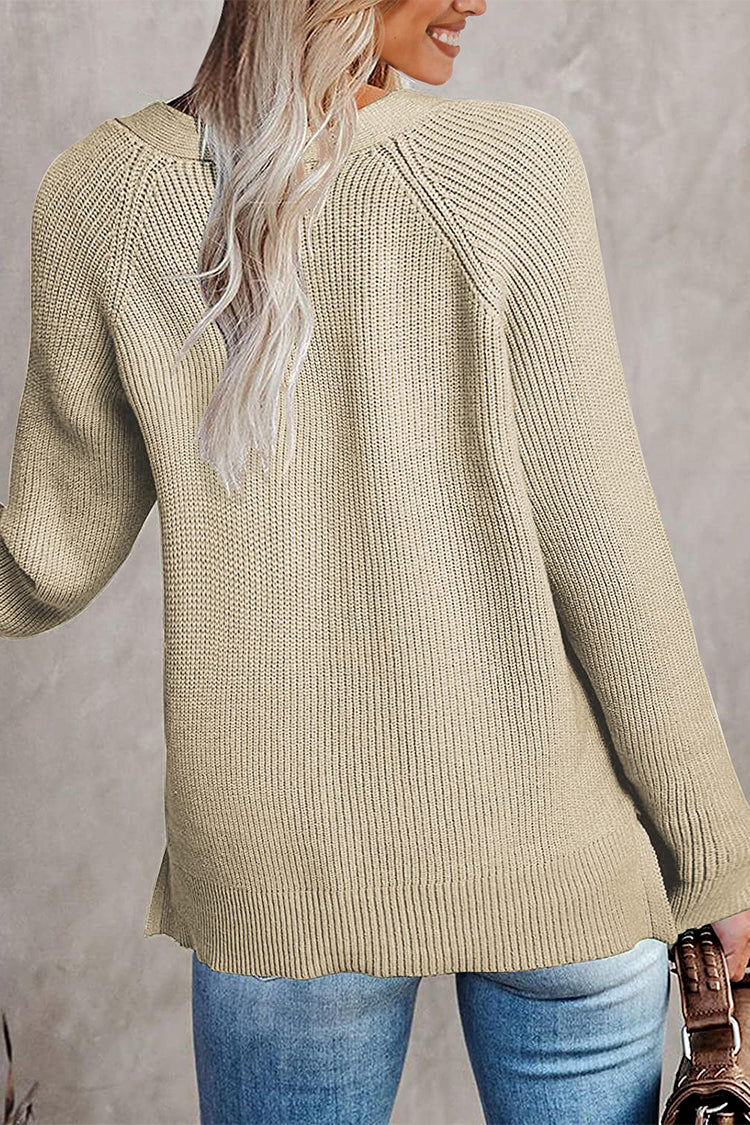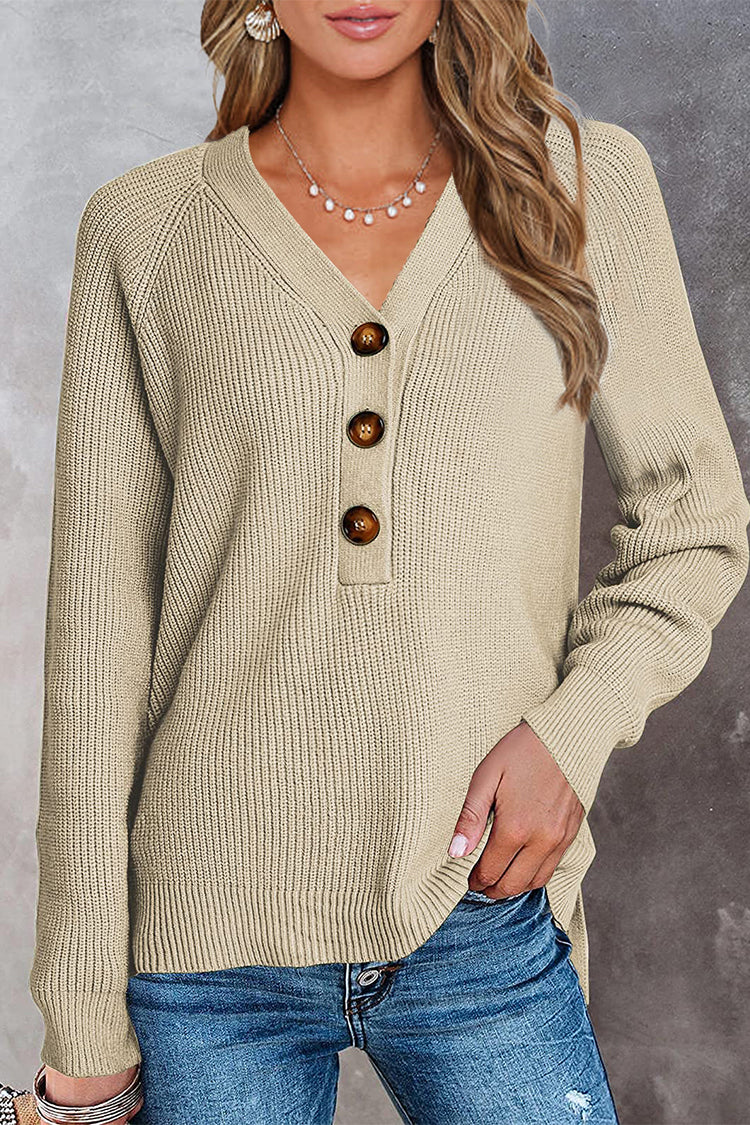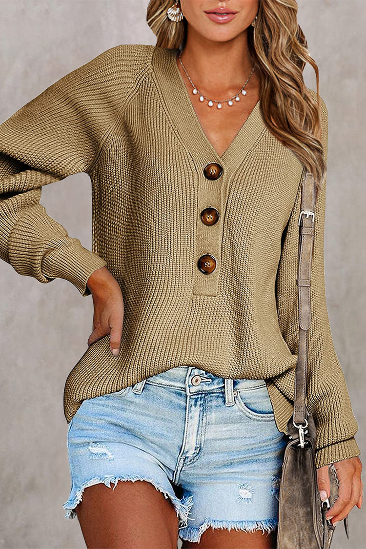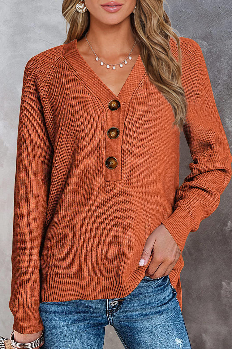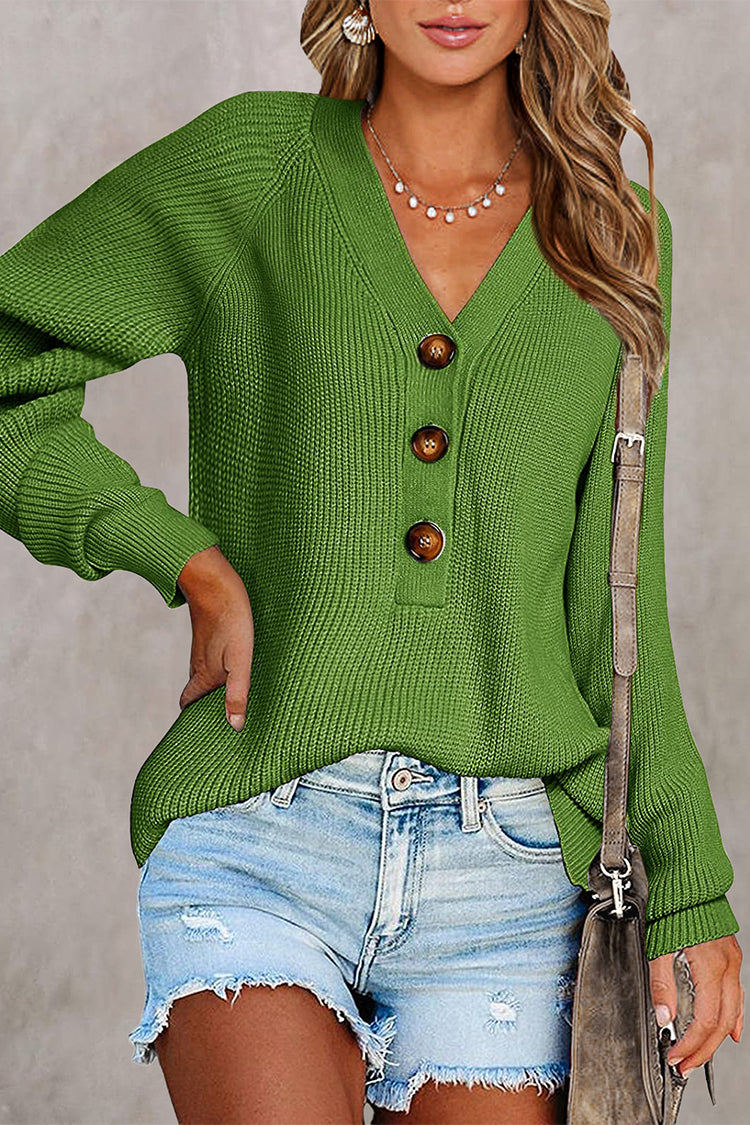 Half Button Raglan Sleeve V Neck Sweater quantity