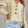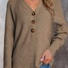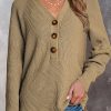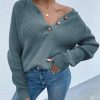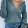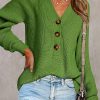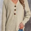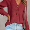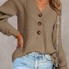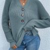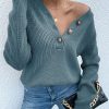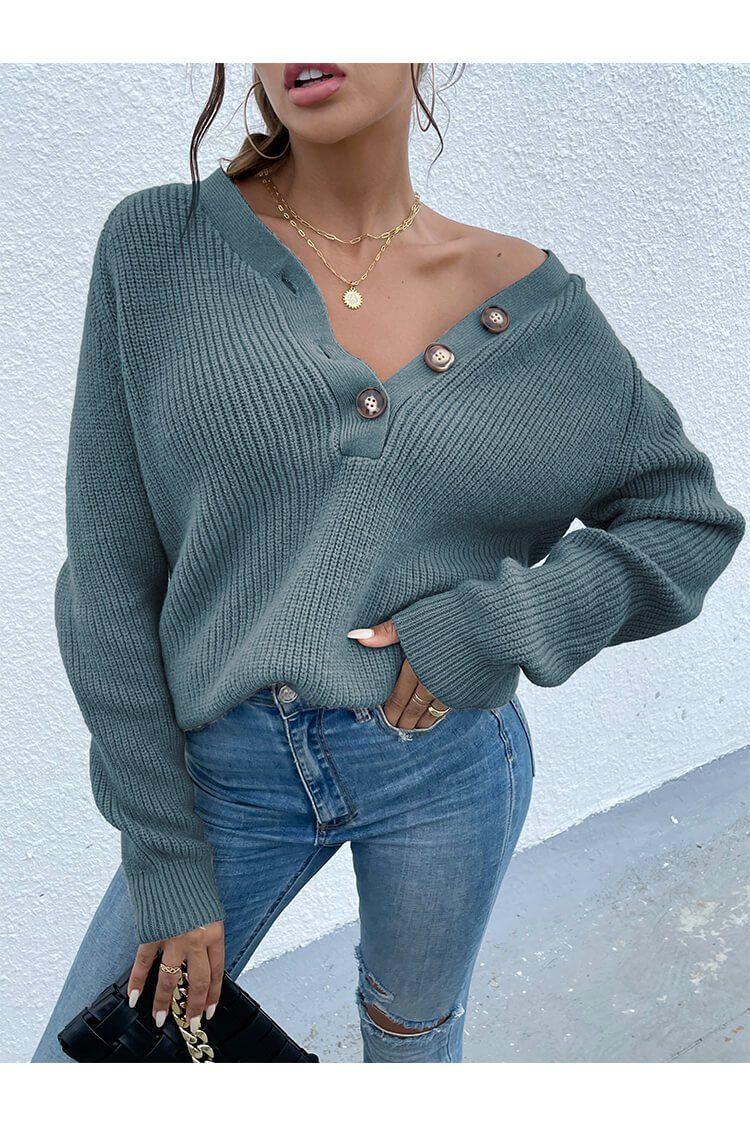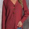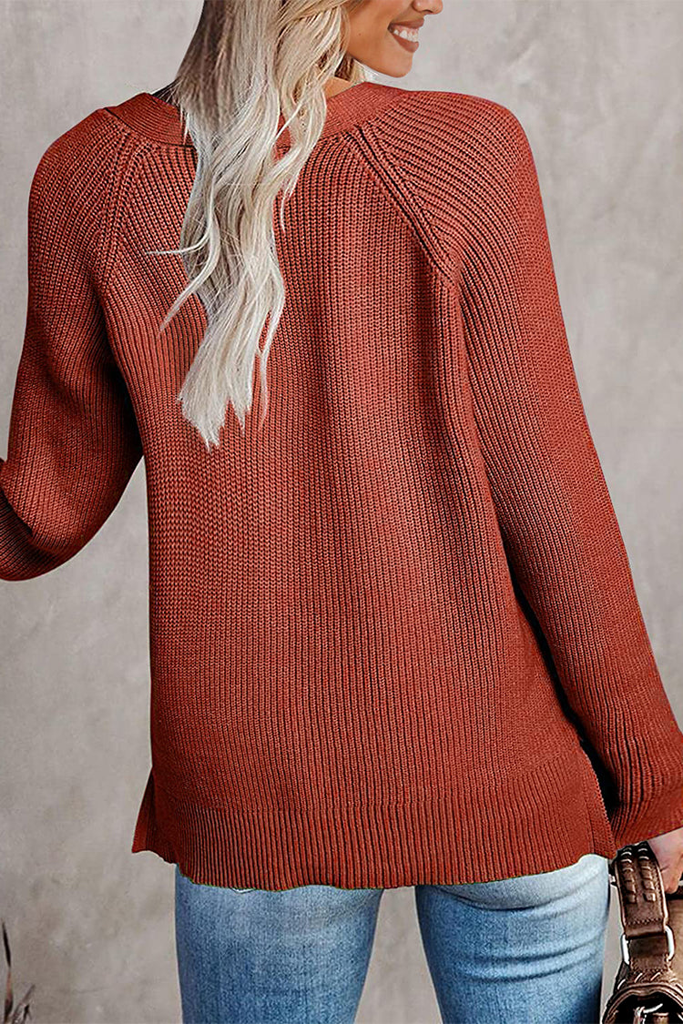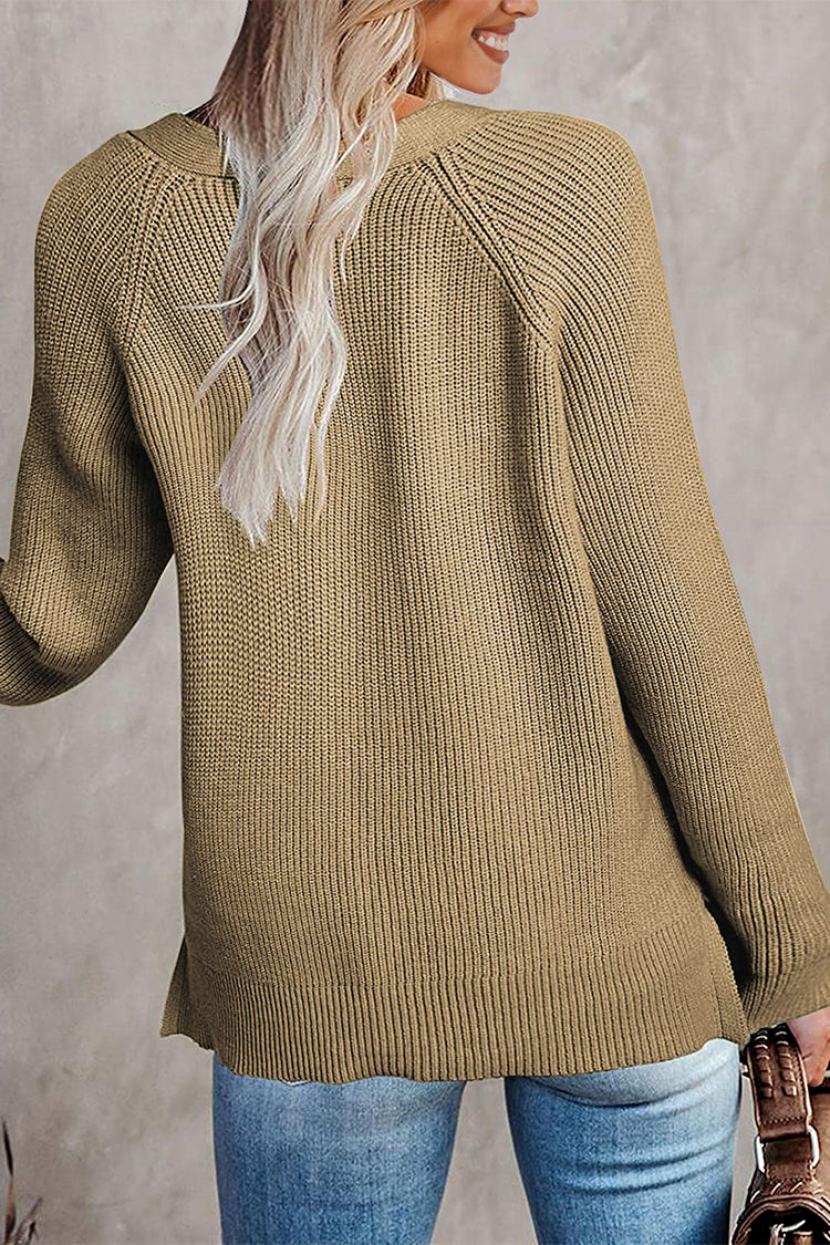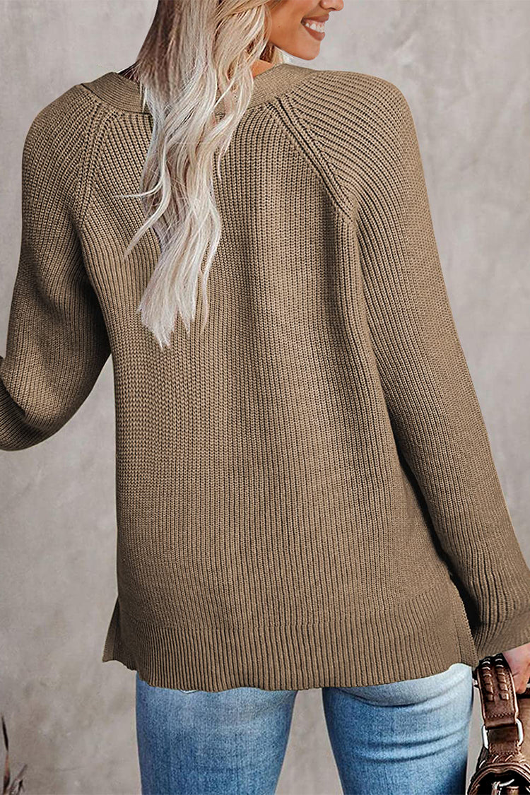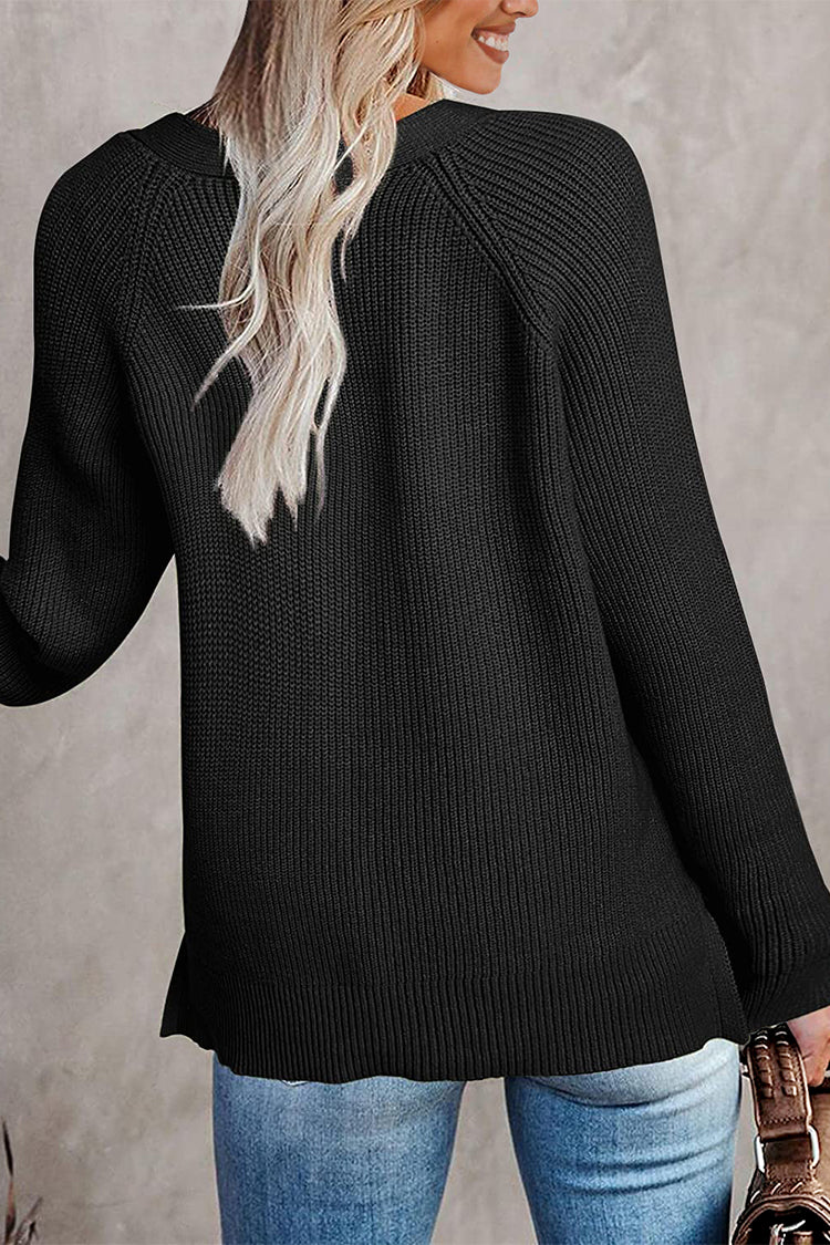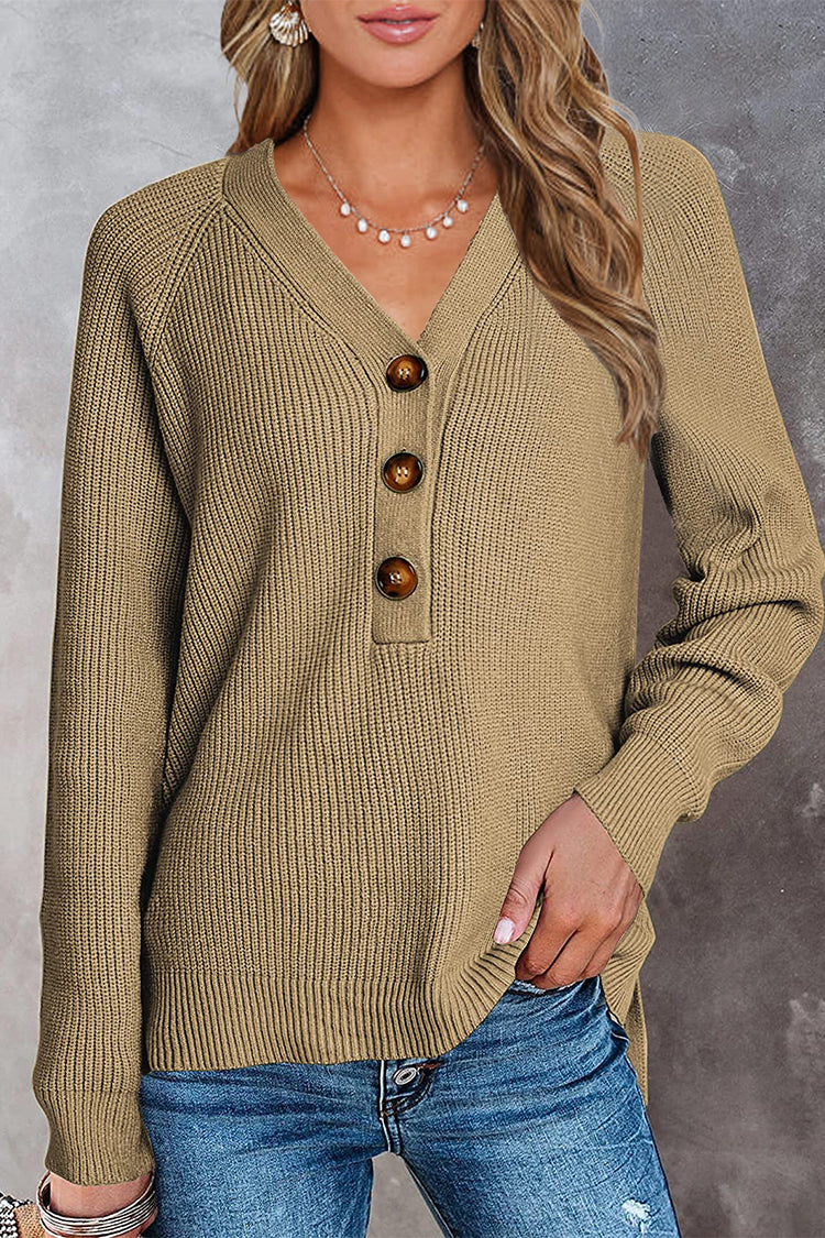 Half Button Raglan Sleeve V Neck Sweater quantity