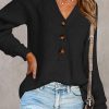 Half Button Raglan Sleeve V Neck Sweater