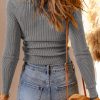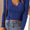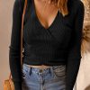 V Neck Pullover Ribbed Knit Slim Fitted Shirts quantity