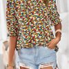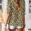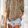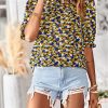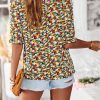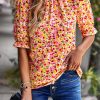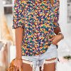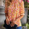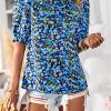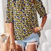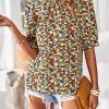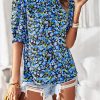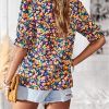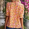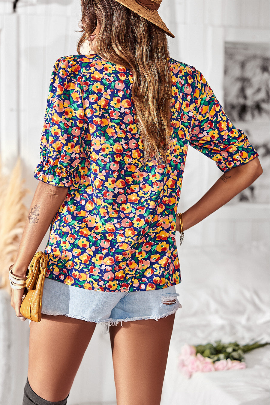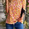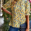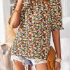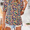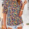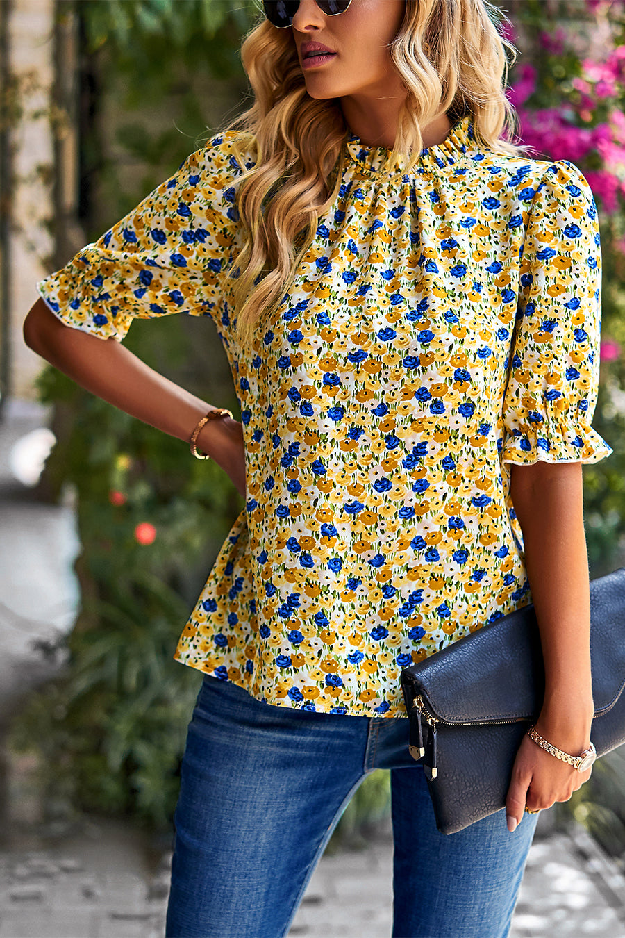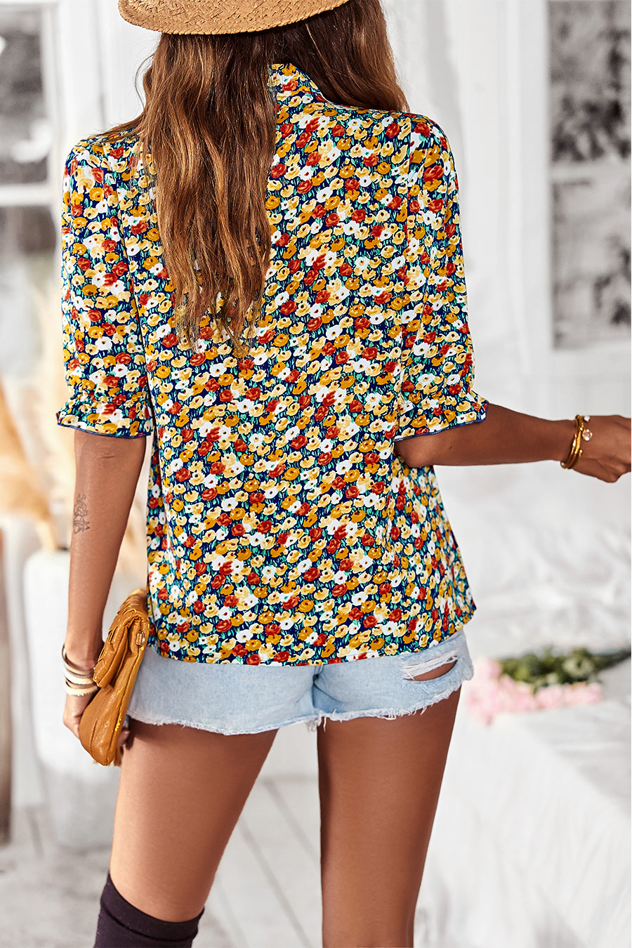 Mock Neck Colorful Floral Short Sleeve Top quantity