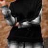 Color Block Plaid Patchwork Hooded Sweatshirt