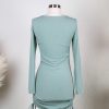 Ruched Long Sleeve Ribbed Dress in Sage