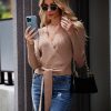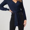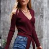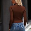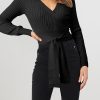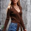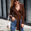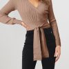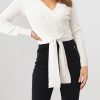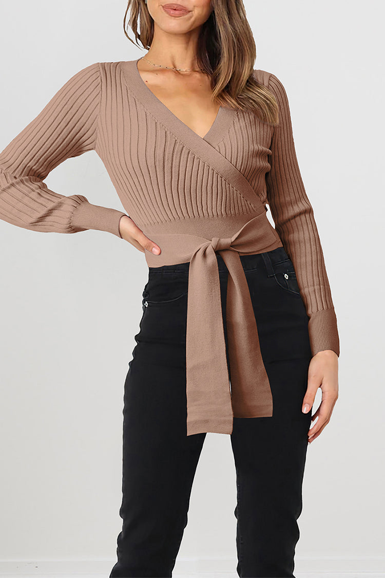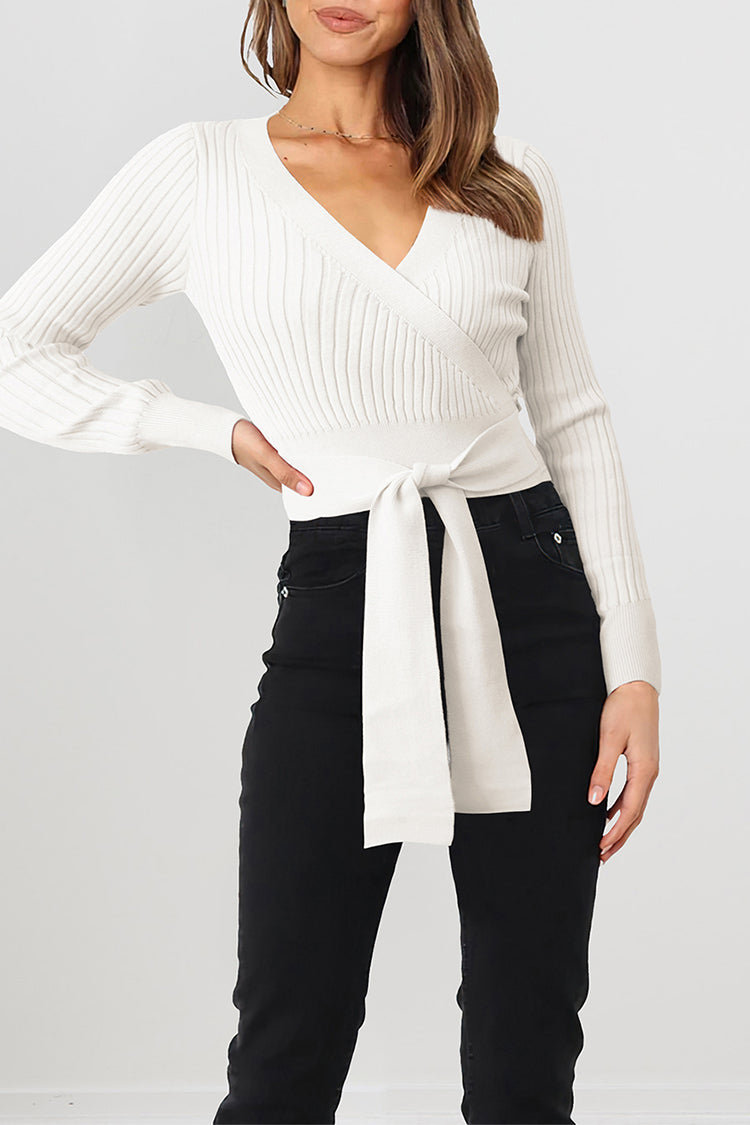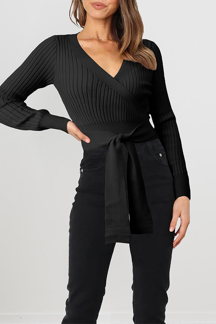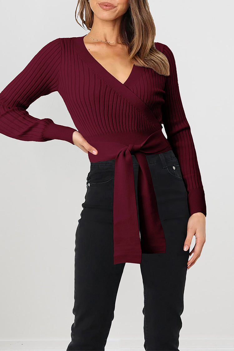 High Waist Tie Front Slim Fit Ribbed Knit Pullover Sweater