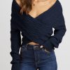 Wrap Front Off Shoulder Asymmetric Pullover Sweater