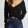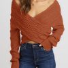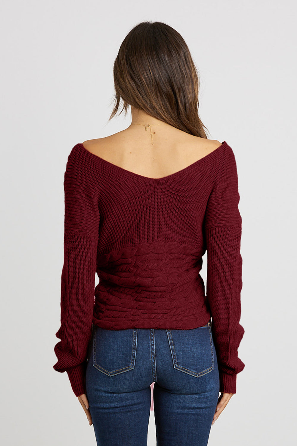 Wrap Front Off Shoulder Asymmetric Pullover Sweater quantity
