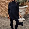 Irregular Hem Side Split Loose Pullover Turtleneck Sweater quantity