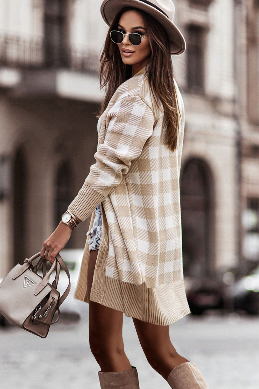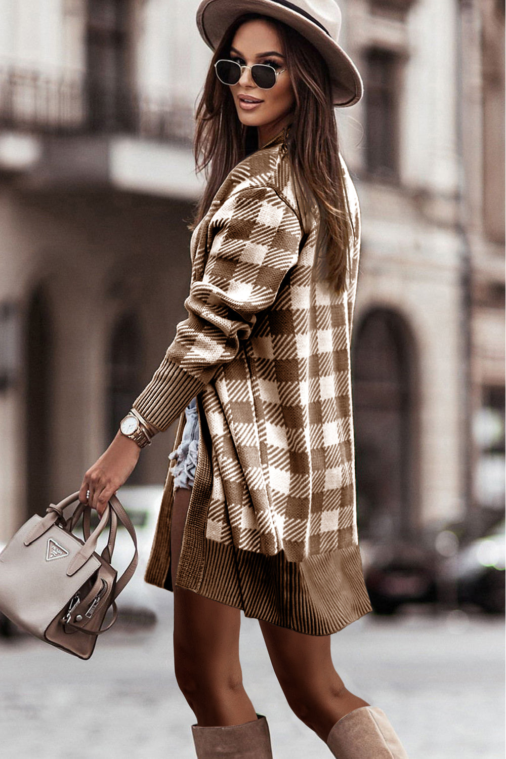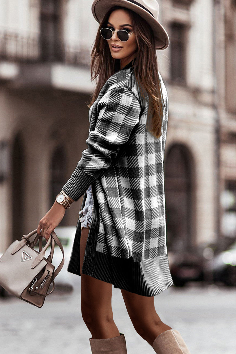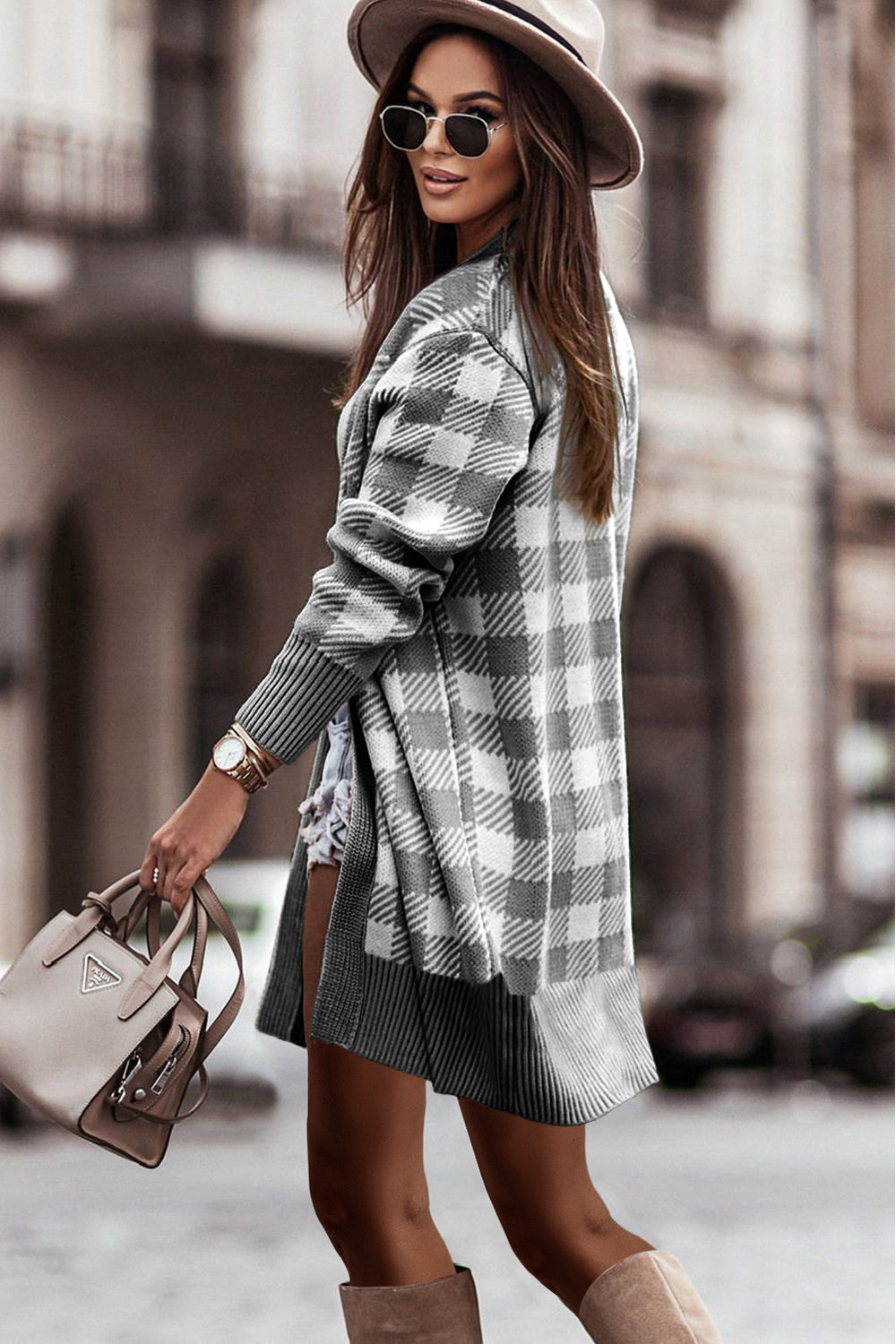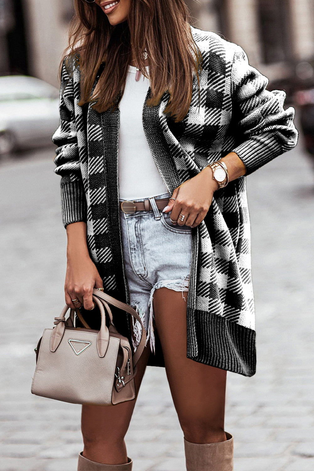 Open Front Oversized Plaid Cardigan Sweater quantity
