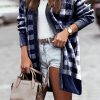 Open Front Oversized Plaid Cardigan Sweater