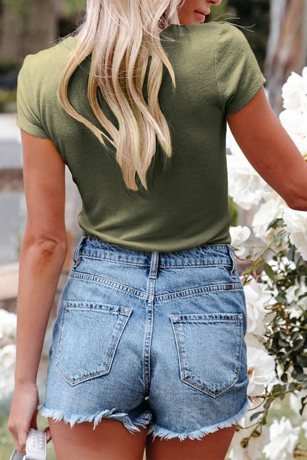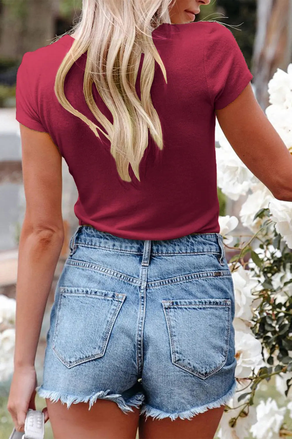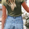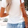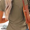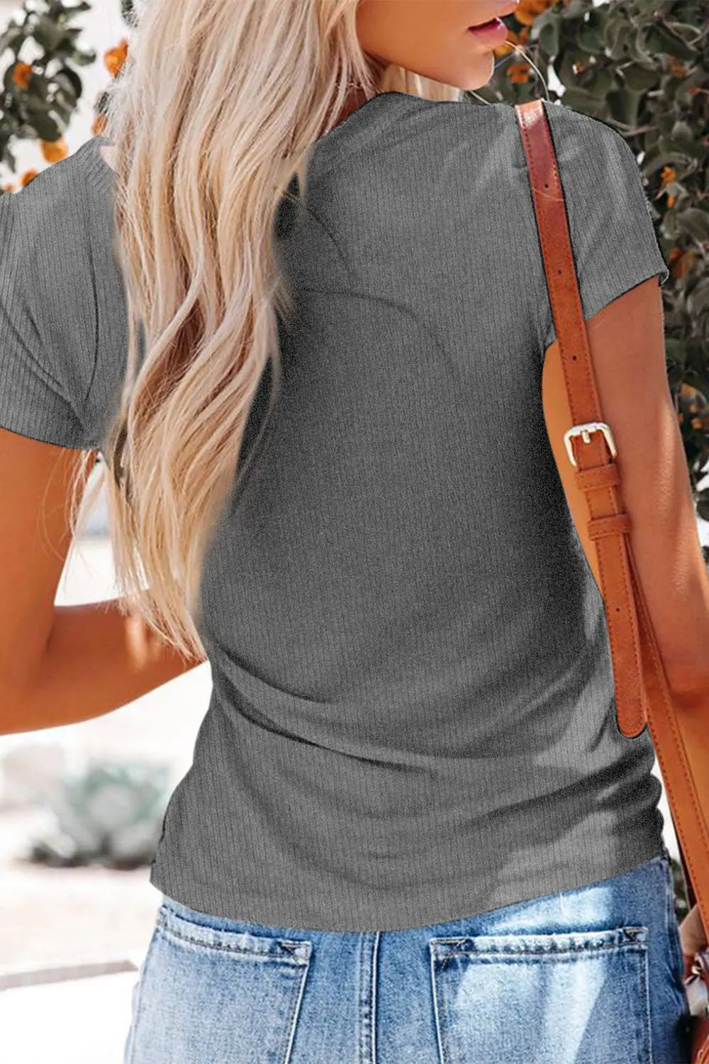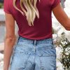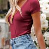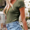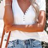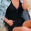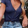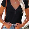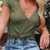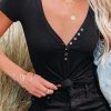 Short Sleeve V Neck Button Ribbed Knit T-shirt