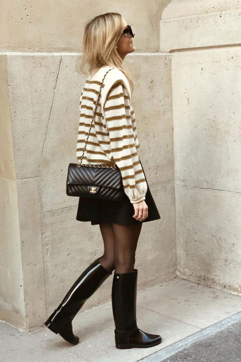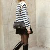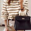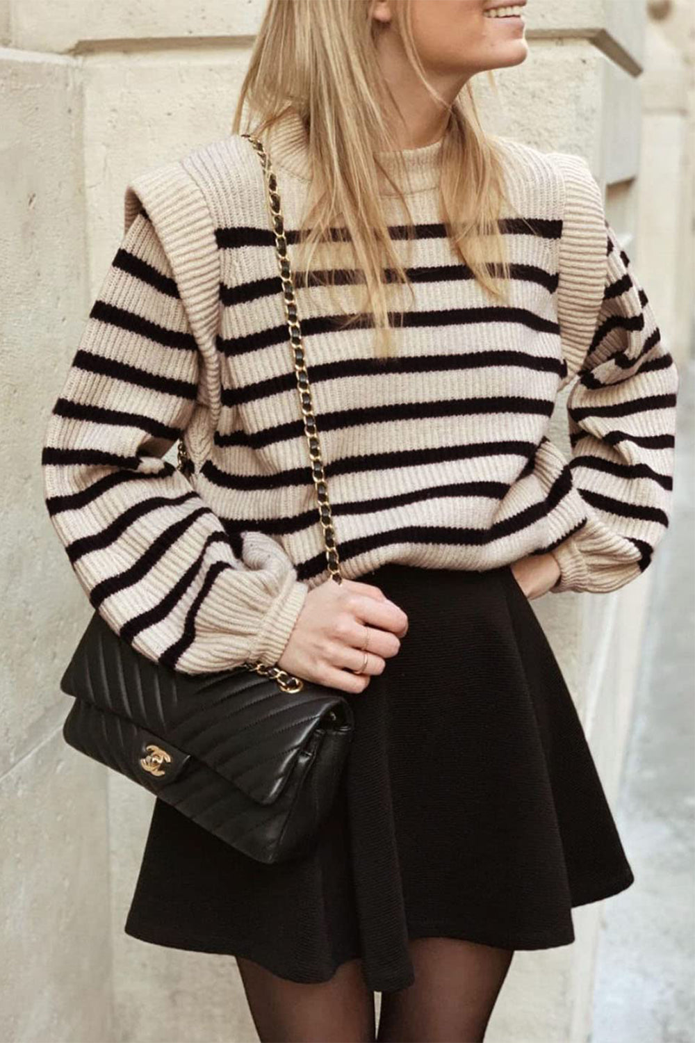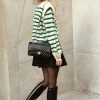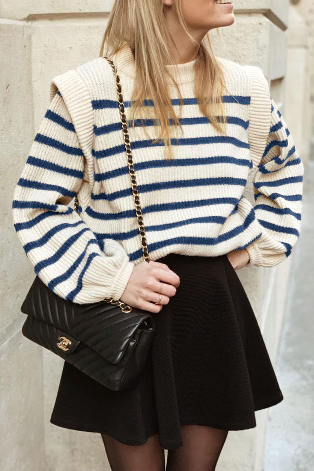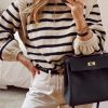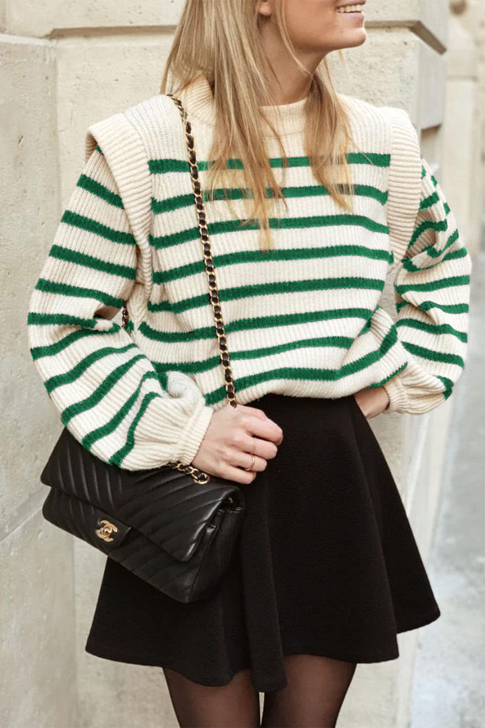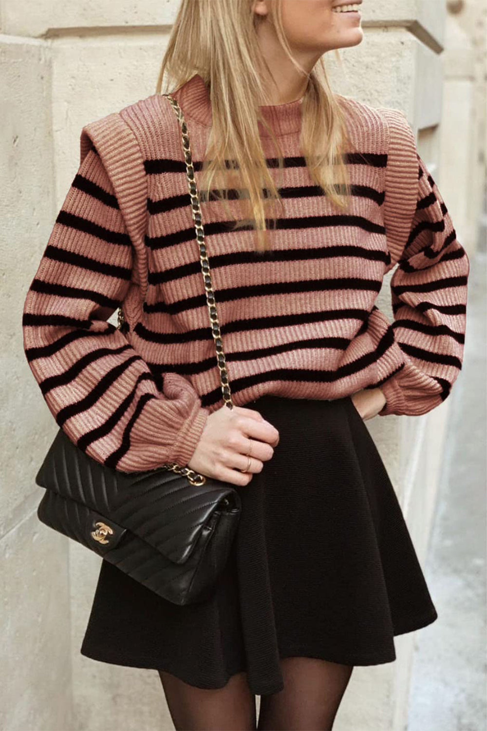 Long Lantern Sleeve Striped Ribbed Knit Pullover Top