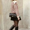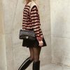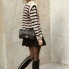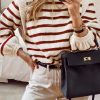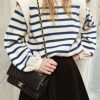 Long Lantern Sleeve Striped Ribbed Knit Pullover Top quantity